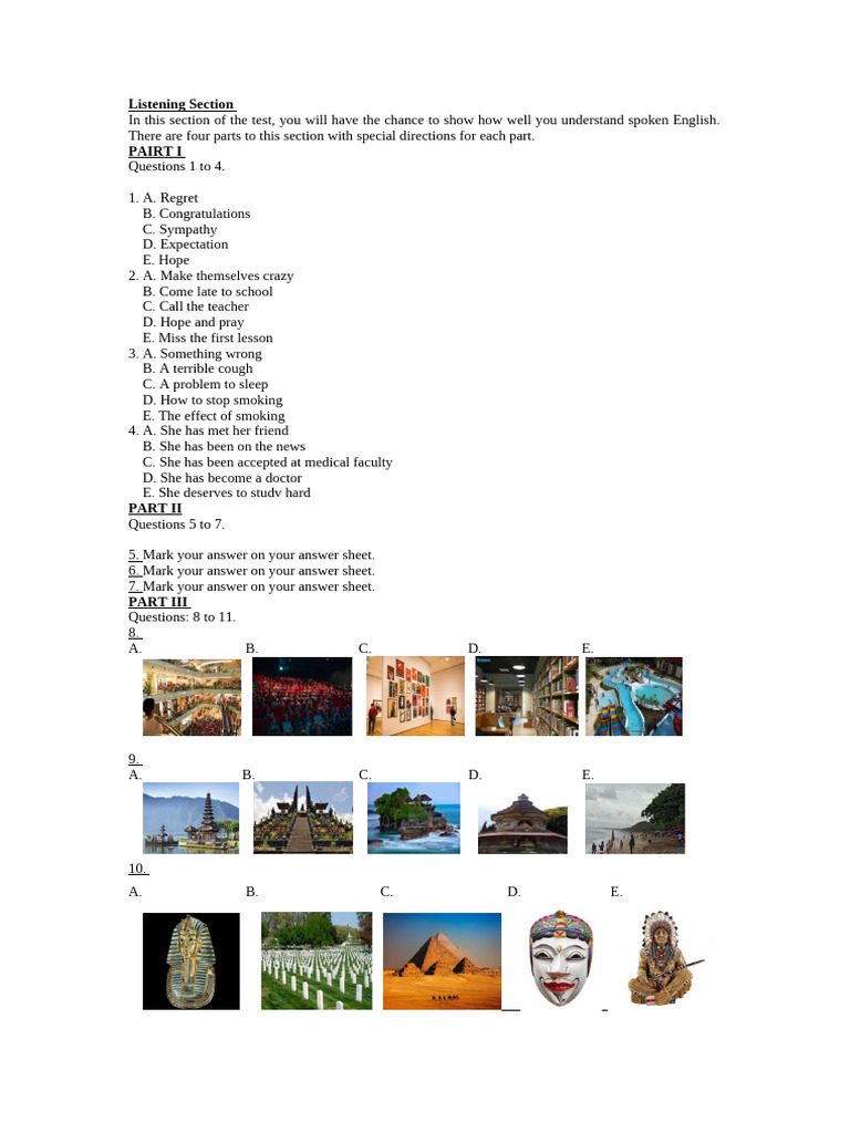 - Contoh Soal: "Read the following news article about renewable energy. What is the author’s main argument regarding solar power development?" atau "Based on the descriptive text about Borobudur Temple, what can be inferred about its architectural style?"